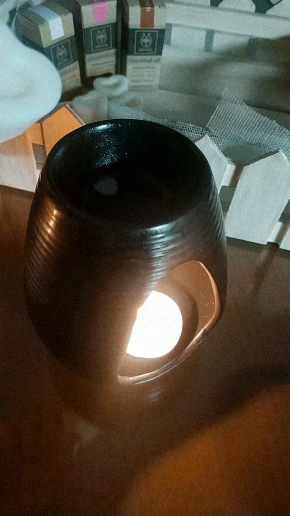 - Μια συσκευή για αιθέρια έλαια. Χρησιμοποιώ τη συγκεκριμένη:
