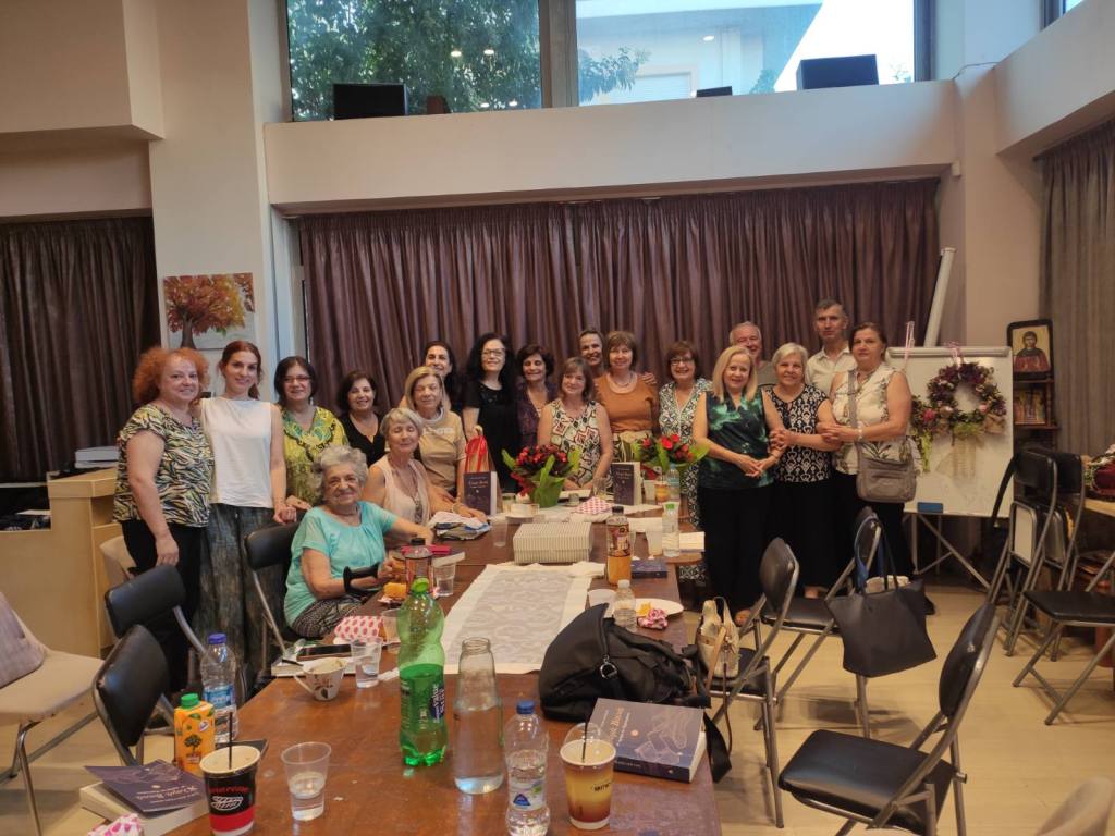 Η Λέσχη Ανάγνωσης ρίχνει αυλαία με το βιβλίο Χλομά Βουνά. Η κα Τίνα Κουτσούμπου, μια γλυκιά ύπαρξη, ραφινάτη και με χιούμορ, όχι μόνο έδωσε μια αρμονική πνοή στο απόγευμα μας αλλά μετουσιώθηκε άψογα με την ομήγυρη. Ένα υπόστρωμα μυρωδάτο με καρύδια και μέλι σαν της Μεσσηνιακές δίπλες που μας κέρασε, αυτό το υπέρηχο γευστικό γλυκό της κοινής μας πατρίδας.